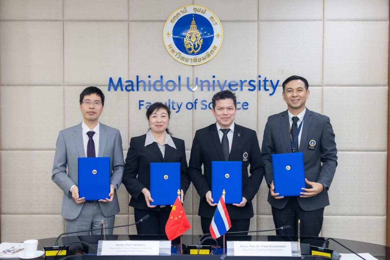 12月3日,四川大学高分子科学与工程学院与泰国玛希隆大学理学院在泰国曼谷举行合作签约仪式。玛希隆大学理学院院长Assoc.Prof.Prasit Suwannalert、副院长Assoc.Prof.Pasit Pakawatpanurut、Assoc.Prof.Wattana Weerachatyanukul、Dr.Rapee Boonplueang等9...